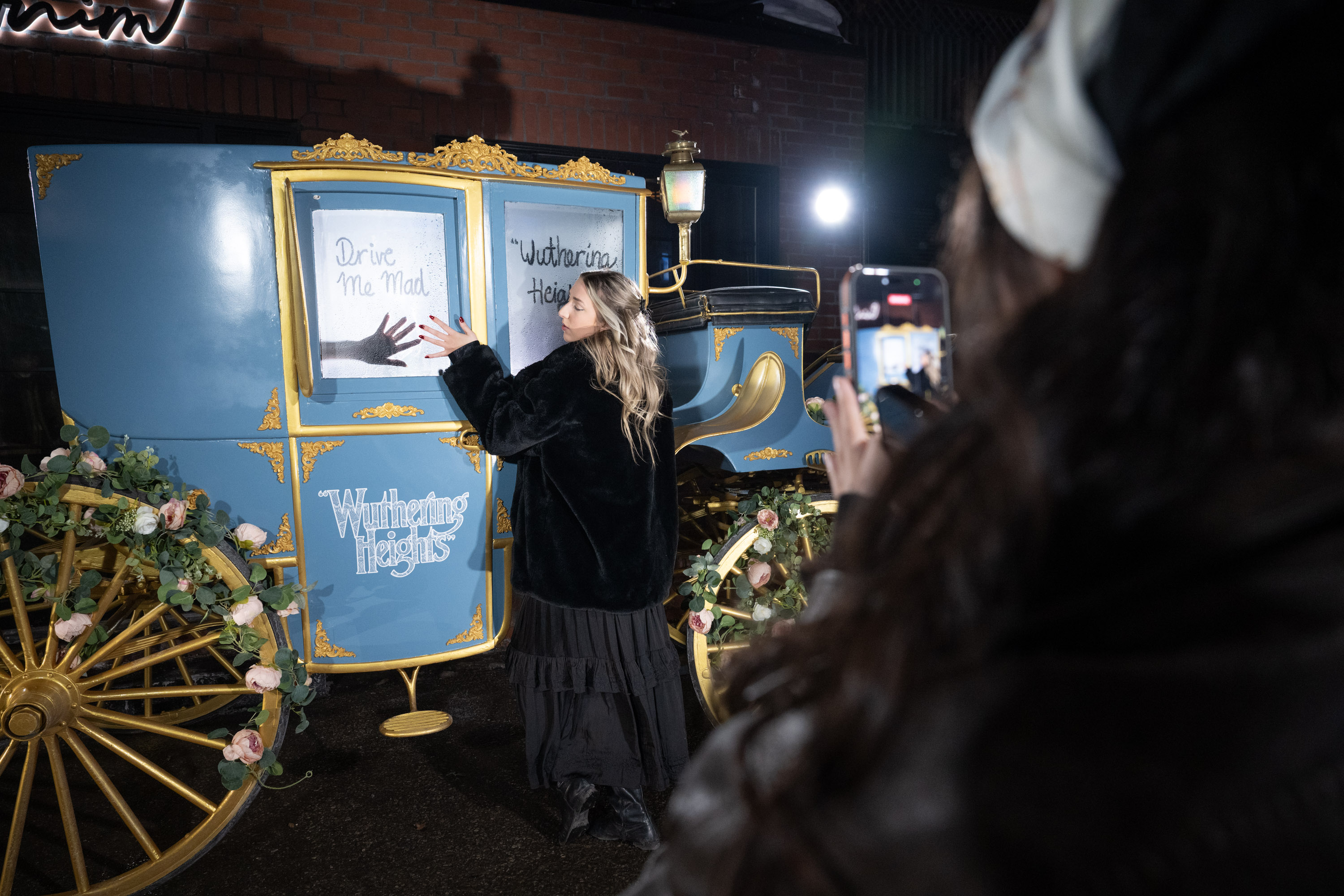 The “Wuthering Heights” Steamy Stagecoach then pulled over in front of the city’s downtown Animl Steakhouse, home to an exclusive creator event, featuring unique photo ops, film-inspired decor, and one-of-a-kind personalized takeaways.
